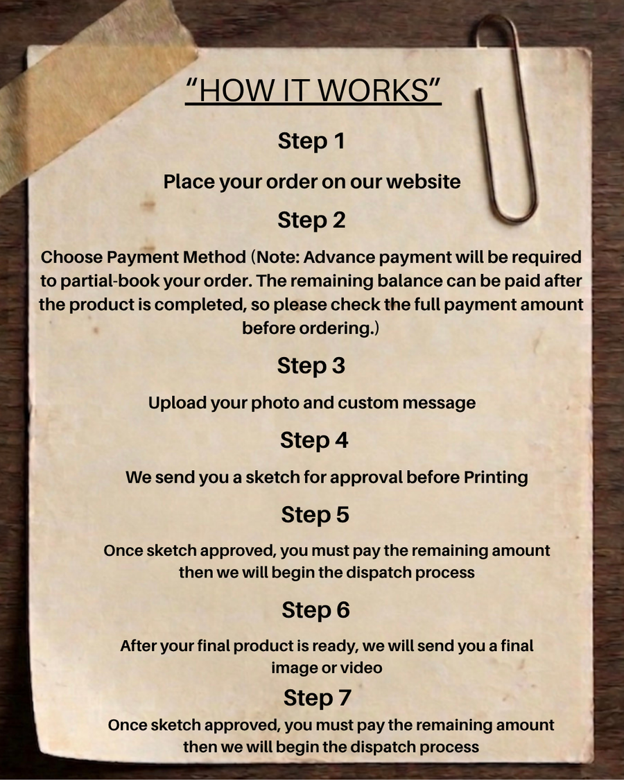 Each product allows only one photo upload. If the photo you upload isn’t suitable, we’ll personally connect with you on given WhatsApp number (checkout page) to request a better one.